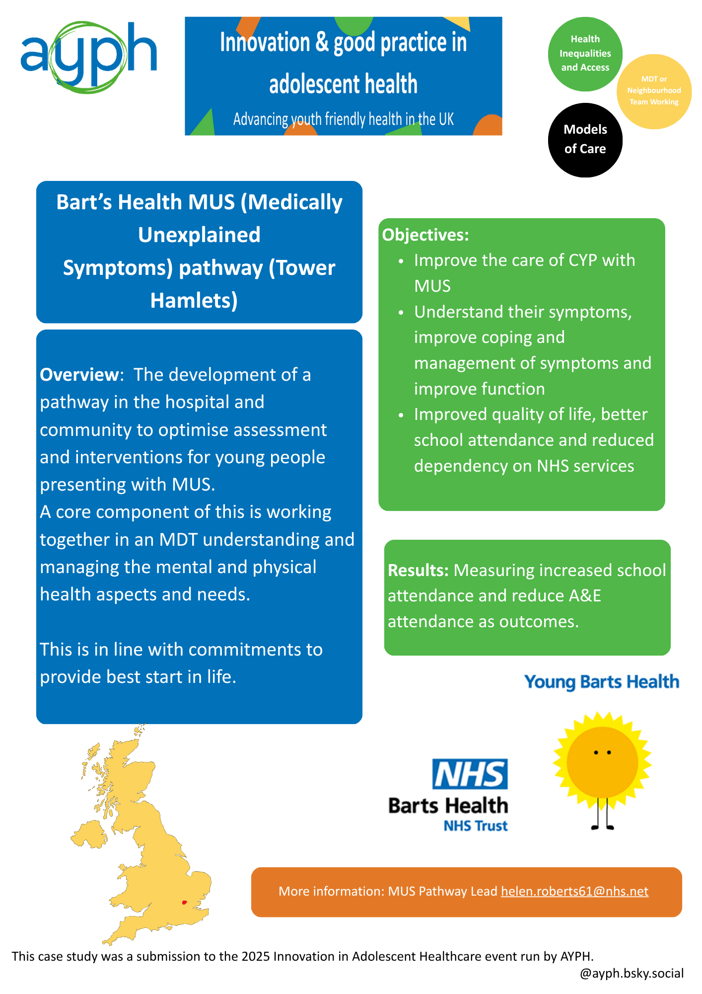 The development of a pathway in the hospital and community to optimise assessment and interventions for young people presenting with medically unexplained symptoms.