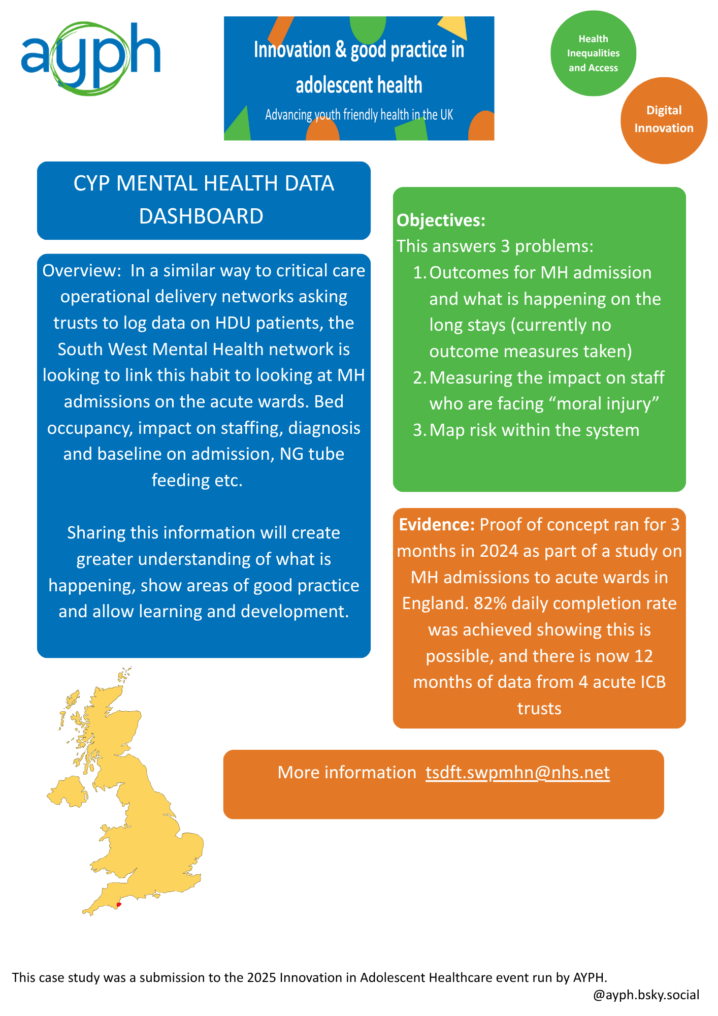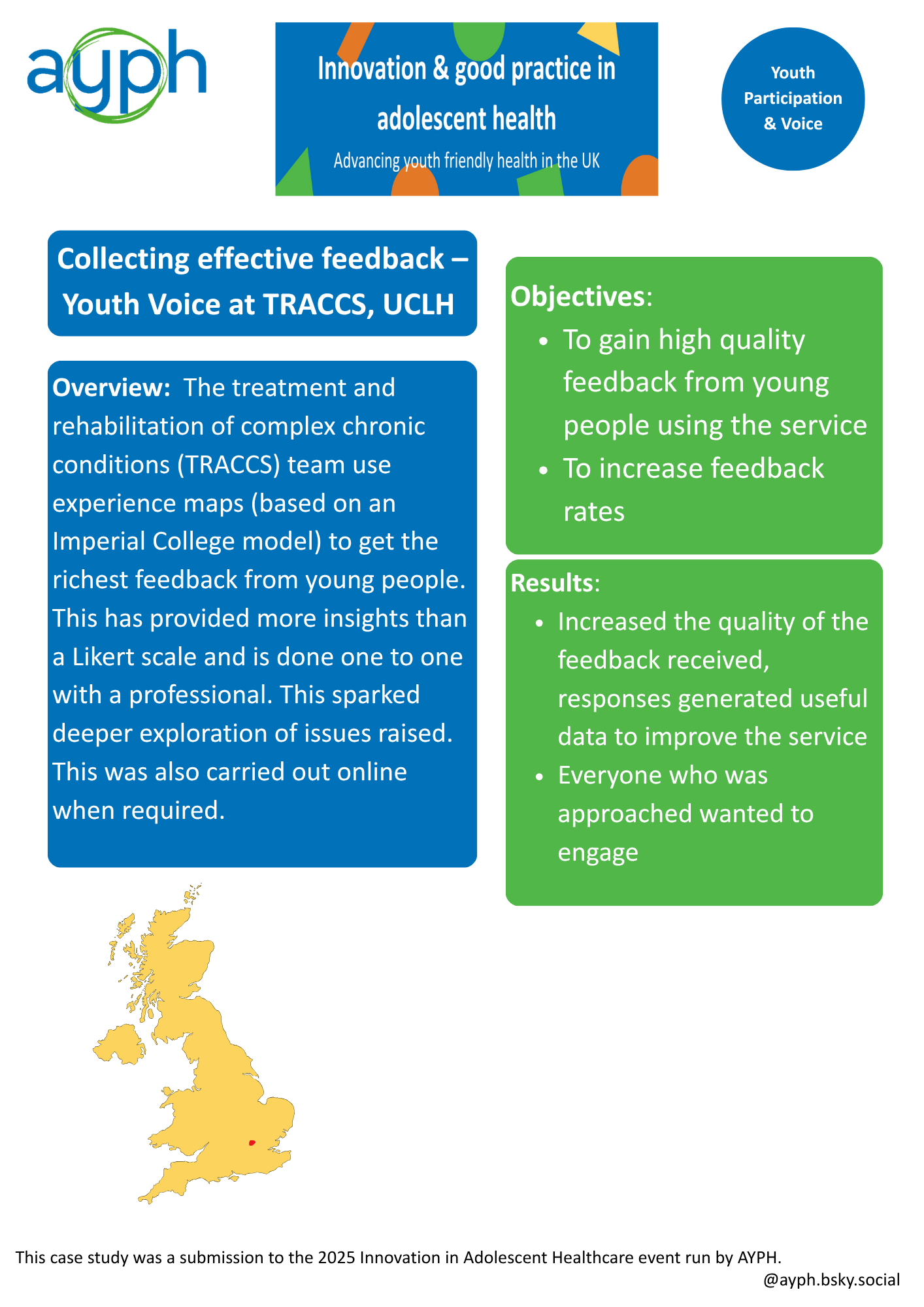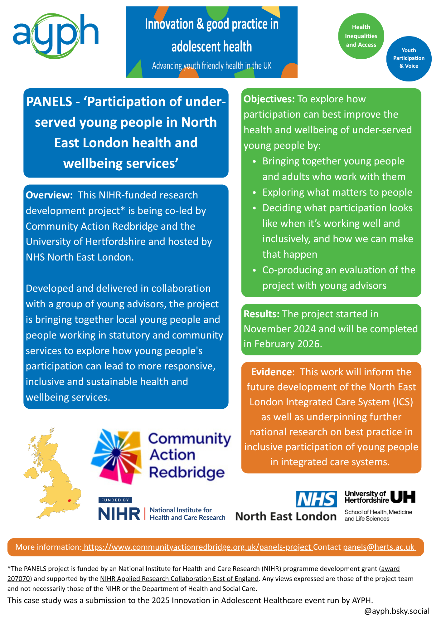 Partners: The event was a partnership between the NIHR funded Project Development Grant and the Association for Young People’s Health. We would also like to thank the young people who attended and presented at the event, the organisations and people who submitted their work and presented at the event, as well as the attendees. We are very grateful to them all for their contribution.